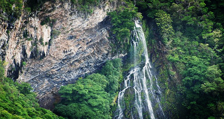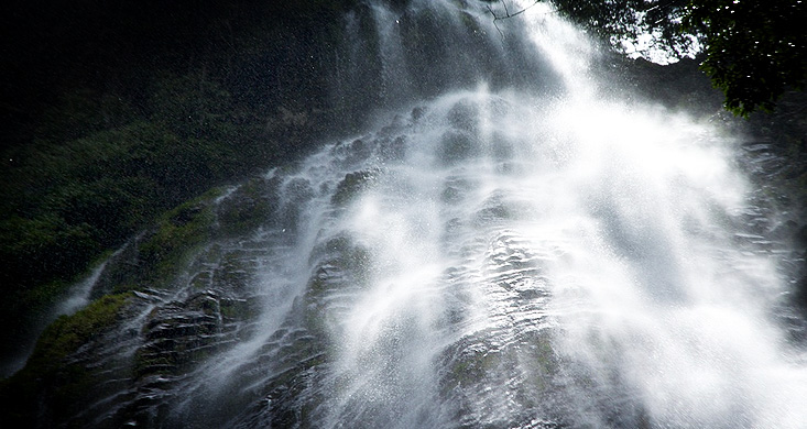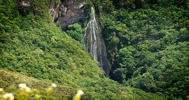 Es un espectáculo conmovedor ver descender más de 60 metros de agua en semejante melindre natural. Bajamos hasta sus pies donde un pozo celebra la sutil llegada del líquido.